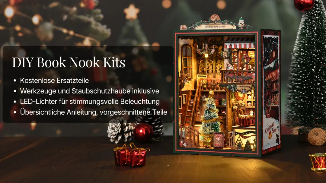 Weihnachtsladen – DIY Book Nook Kit mit LED-Touchlampe (3D-Holzpuzzle)
