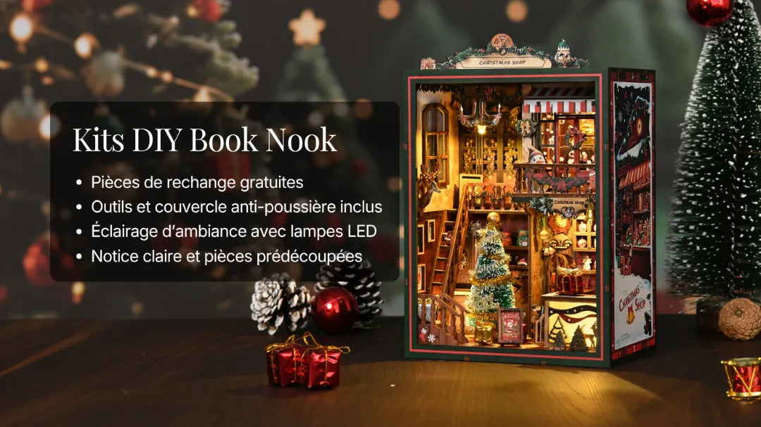 Boutique de Noël – Kit DIY Book Nook avec lampe LED tactile (puzzle 3D en bois)