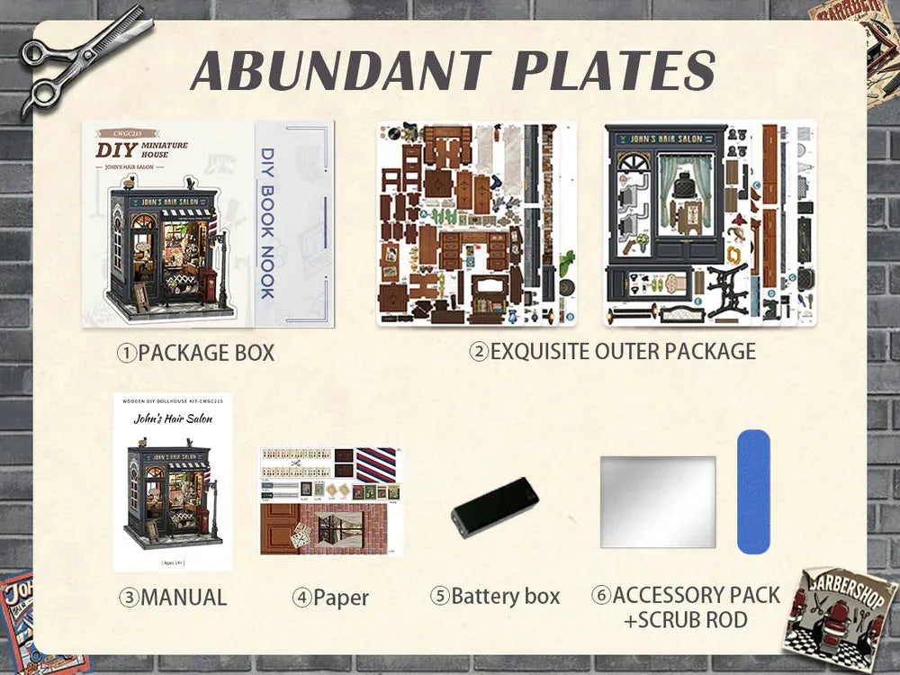 Package Included: 210 pre-cut wood pieces, paper accessories, battery box & wires, English instruction manual. (Note: Glue and batteries are not included due to customs policies).