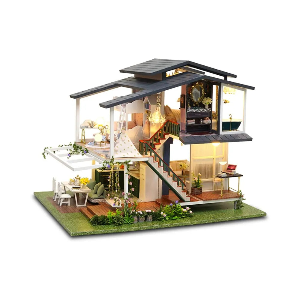 Package Included: DIY miniature house kit parts, illustrated English instruction manual, music movement, LED light, dust proof cover