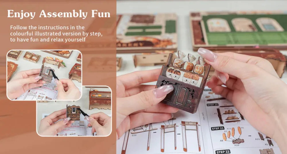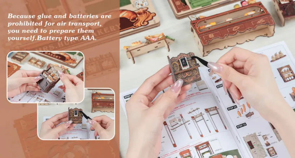 Package Included: 216 pre-cut pieces, Dust cover, LED light with battery box, Wires, Paper accessories, English instruction manual. Note: Glue and batteries are not included due to shipping restrictions.